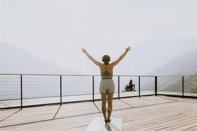 Nehmen Sie an den morgendlichen Yoga- und Gymnastikübungen auf der Dachterrasse mit überwältigendem Rundblick teil.
